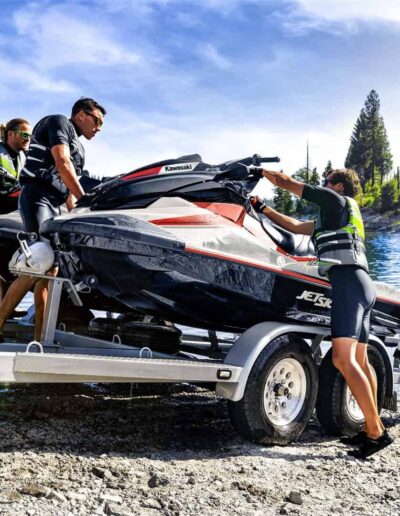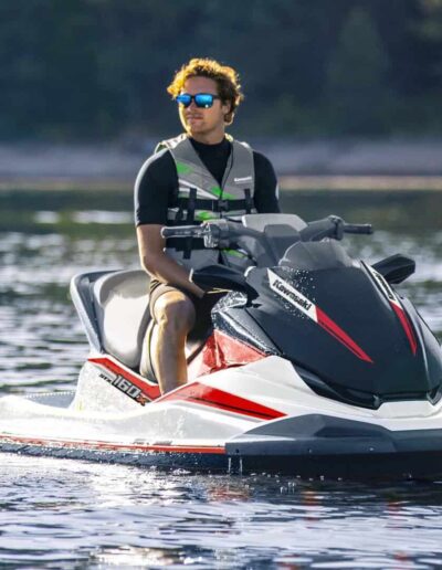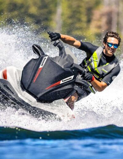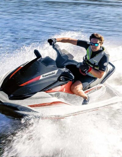 Powered by a class-leading 1,498cc engine with digital fuel injection, the Jet Ski STX160 series of personal watercraft delivers strong acceleration, excellent fuel economy and low emissions. The agile composite hull and advanced rider features make it the ideal choice for lake-loving enthusiasts.